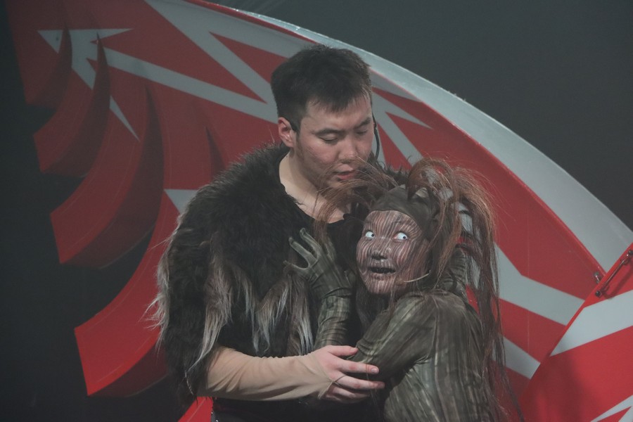 Меня впечатлило все: сама идея связать мотивы этно-сказки со стилем фьюжн мюзикла, превосходная игра буквально всего актерского состава, интересные декорации не только самой сцены, но и подмостков и наконец, сногсшибательные костюмы.